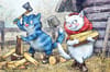 Открытка. Синие коты. Колка дров