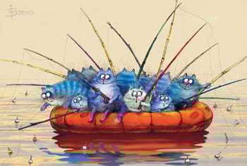 Красивая и забавная почтовая открытка с синими котами обязательно понравится получателю, поскольку рисунки Ирины Зенюк очень милые и продуманы до мелочей.