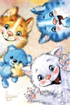 Красивая и забавная почтовая открытка с синими котами обязательно понравится получателю, поскольку рисунки Ирины Зенюк очень милые и продуманы до мелочей.