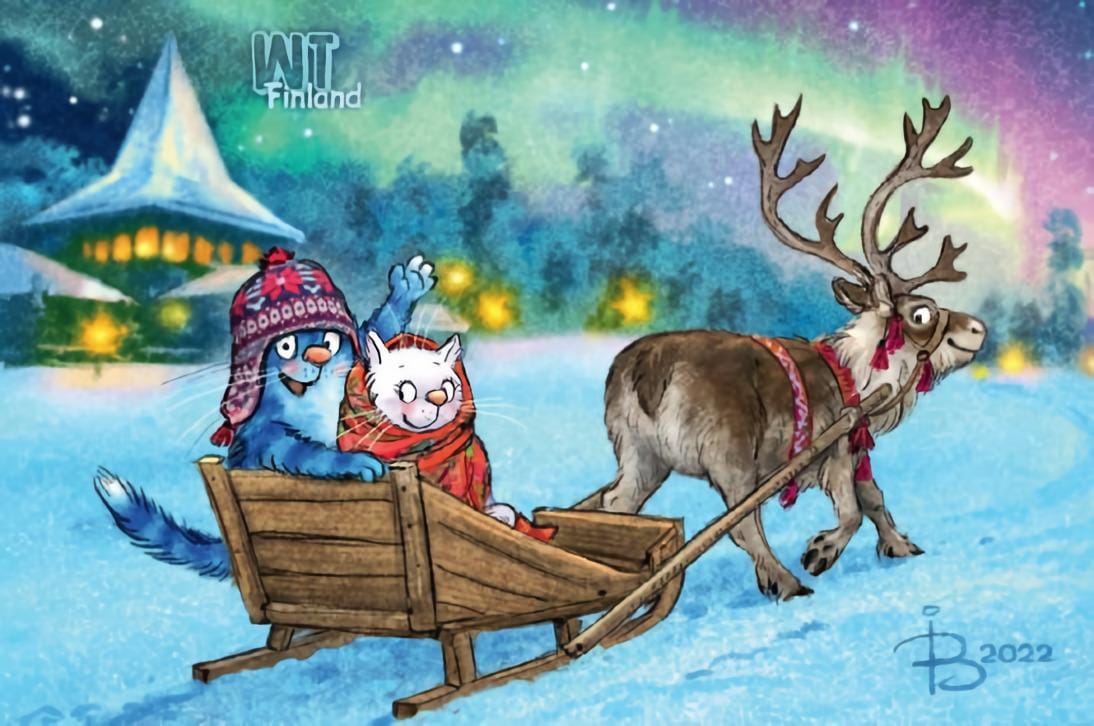 Открытка. Синие коты. Коты путешествуют. Финляндия