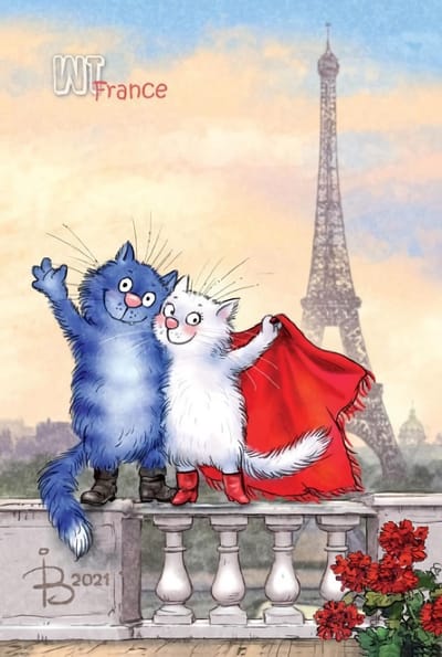 Открытка. Синие коты. Коты путешествуют. Франция