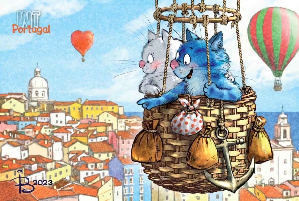Открытка. Синие коты. Коты путешествуют. Португалия