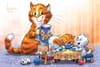 Красивая и забавная почтовая открытка с синими котами обязательно понравится получателю, поскольку рисунки Ирины Зенюк очень милые и продуманы до мелочей.