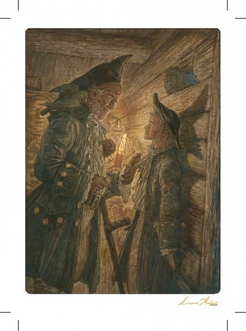 Авторская почтовая открытка по мотивам произведения «Остров сокровищ». Иллюстрация Антона Ломаева. Открытку можно отправить как в любом почтовом конверте, так и без него. На обратной стороне присутствует место для оформления отправления, наклеивания марки и пары строк от отправителя.