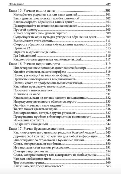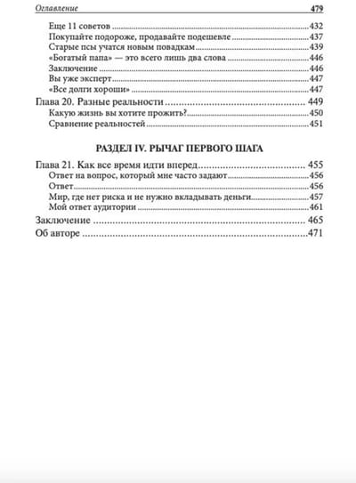 В своих предыдущих книгах Роберт Кийосаки обсуждал силу денежного потока. А в этой он показывает, насколько мощным орудием в мире финансов являются рычаги. Существует много видов рычагов, умело используя которые вы сможете рано отойти от дел и успеть в полной мере насладиться жизнью. Таким образом вы сможете осуществить один из важнейших заветов богатого папы: сделаете так, что деньги будут работать на вас, а не вы всю оставшуюся жизнь будете работать ради денег.