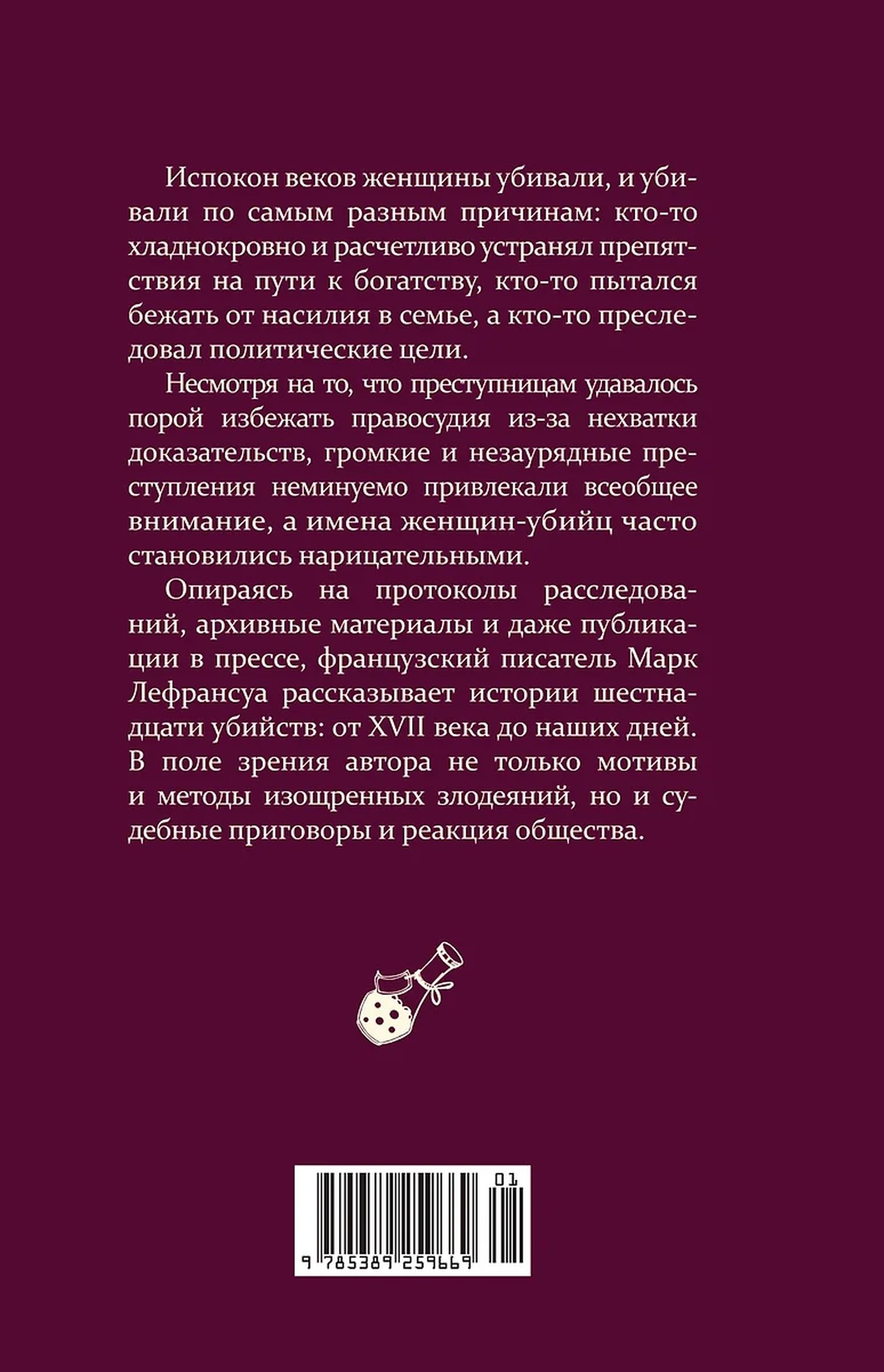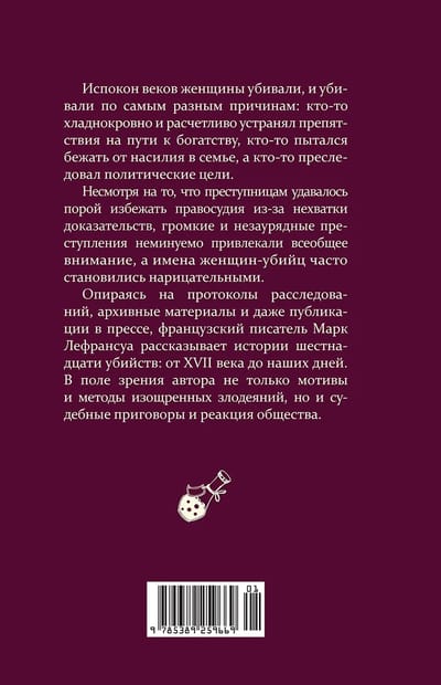 Что толкало женщин на убийства? Как судили преступниц и как к ним относилось общество? В своей книге французский писатель Марк Лефрансуа в подробностях рассказывает о преступницах прошлого: разгневанных женах и непокорных дочерях, бесстрашных революционерках и хладнокровных серийных убийцах. Драматургия и трагедии прошлого разворачиваются в исторических декорациях от XVII века до наших дней.