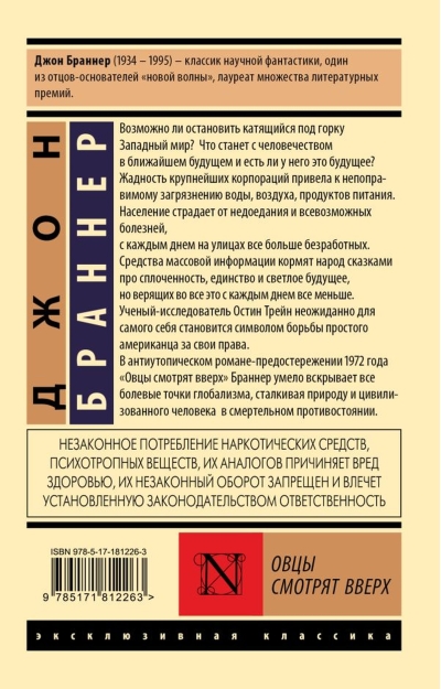 В антиутопическом романе-предостережении 1972 года «Овцы смотрят вверх» Браннер умело вскрывает все болевые точки глобализма, сталкивая природу и цивилизованного человека в смертельном противостоянии.