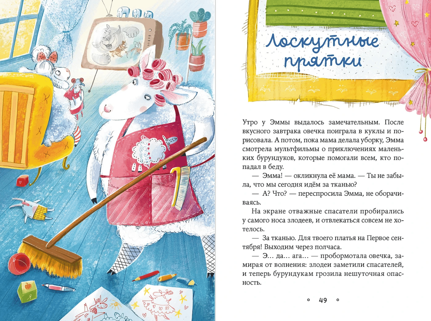 Как и читатель, овечка Эмма растёт. Первая часть книги включает истории из дошкольной жизни Эммы. Вместе с овечкой и её друзьями читатели научатся договариваться, делиться игрушками и прислушиваться к советам старших. Во второй части Эмма идёт в школу. Теперь ей предстоит научиться не опускать лапы, когда случаются неприятности, и извиняться, если совершил ошибку. А ещё — отличать настоящую дружбу от обманчивой и делать вместе с товарищами общее полезное дело.