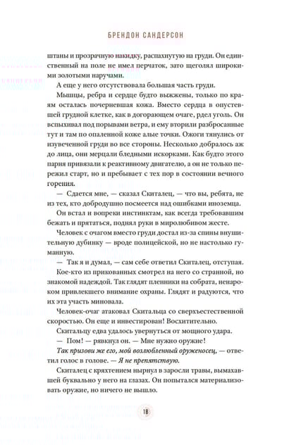 Уже многие годы Скиталец вынужден бежать, спасаться от «Ночной бригады» — безжалостной армии наемников, управляющей легионами мертвецов. И ни один мир Космера не в силах дать ему надежное убежище. Чтобы путешествовать в этой вселенной, необходима инвеститура — энергия с магическими свойствами. Если исчерпать ее запас, можно застрять на какой-нибудь планете, и Скитальцу выпало несчастье стать пленником мира, чьи обитатели кочуют вместе с ночью. Потому что днем там выжить невозможно: солнце сжигает все, что способно гореть, и даже плавит камни. Скитальцу предстоит жестокая борьба — с яростной природой, с могущественным тираном и даже с собственным мучительным прошлым.
