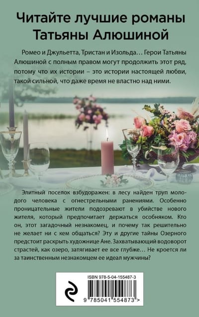 Элитный поселок взбудоражен: в лесу найден труп молодого человека с огнестрельными ранениями. Особенно проницательные жители подозревают в убийстве нового жителя, который предпочитает держаться особняком. Кто он, этот загадочный незнакомец, и почему так решительно не желает ни с кем общаться? Эту и другие тайны Озерного предстоит раскрыть художнице Ане. Захватывающий водоворот страстей, как озеро, затягивает ее все глубже… Не кроется ли за таинственным незнакомцем ее идеал мужчины?