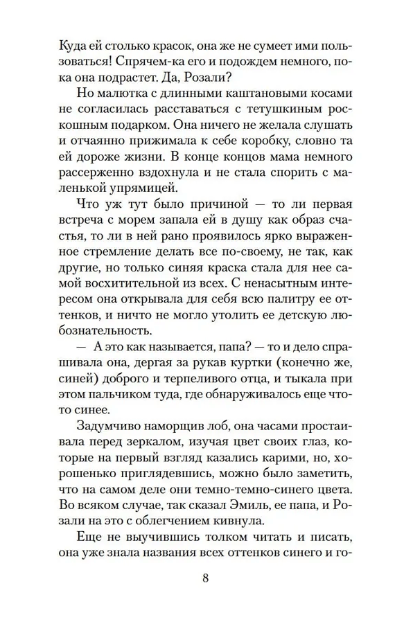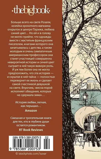 Больше всего на свете Розали, хозяйка крохотного магазина открыток в центре Парижа, любила синий цвет… Но ей и в голову не могло прийти, что однажды, вместе с маститым французским писателем, книгами которого она зачитывалась с детства, а также молодым и очень симпатичным американским профессором, она попадет в совершенно невероятную историю и синий цвет сыграет в ней такую важную роль. И уж тем более она не могла предположить, что эта история — и скрытая в ней тайна — полностью перевернет ее жизнь и сделает самой счастливой девушкой на свете. Впрочем, «весна порой исполняет обещания, которых не сдержала зима»…
