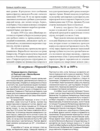 Особую роль играл заказ корабля нового класса, фрегата «Светлана», во Франции. Вчерашние враги полностью оправдали надежды Морского ведомства. «Светлана» по крепости постройки оставила далеко позади фрегаты отечественной постройки. Заложенная в 1856 году, «Светлана», пережив несколько тимберовок и перевооружений, была исключена из списков только в 1892 году.