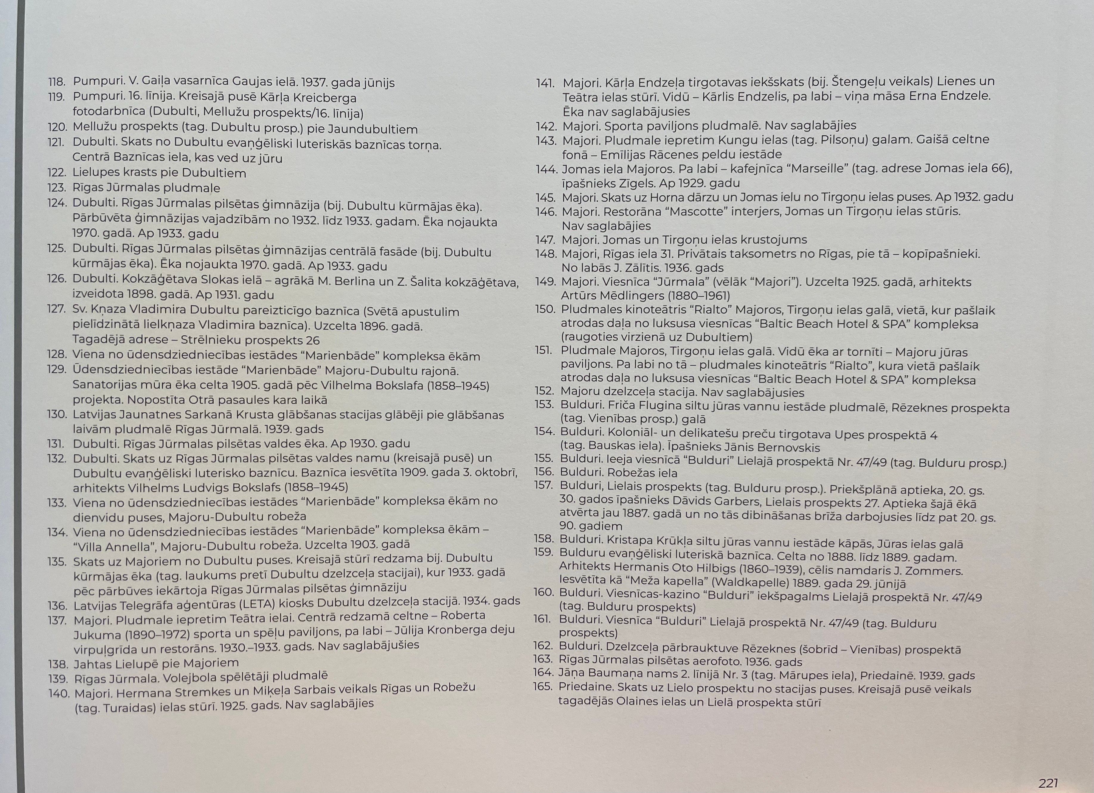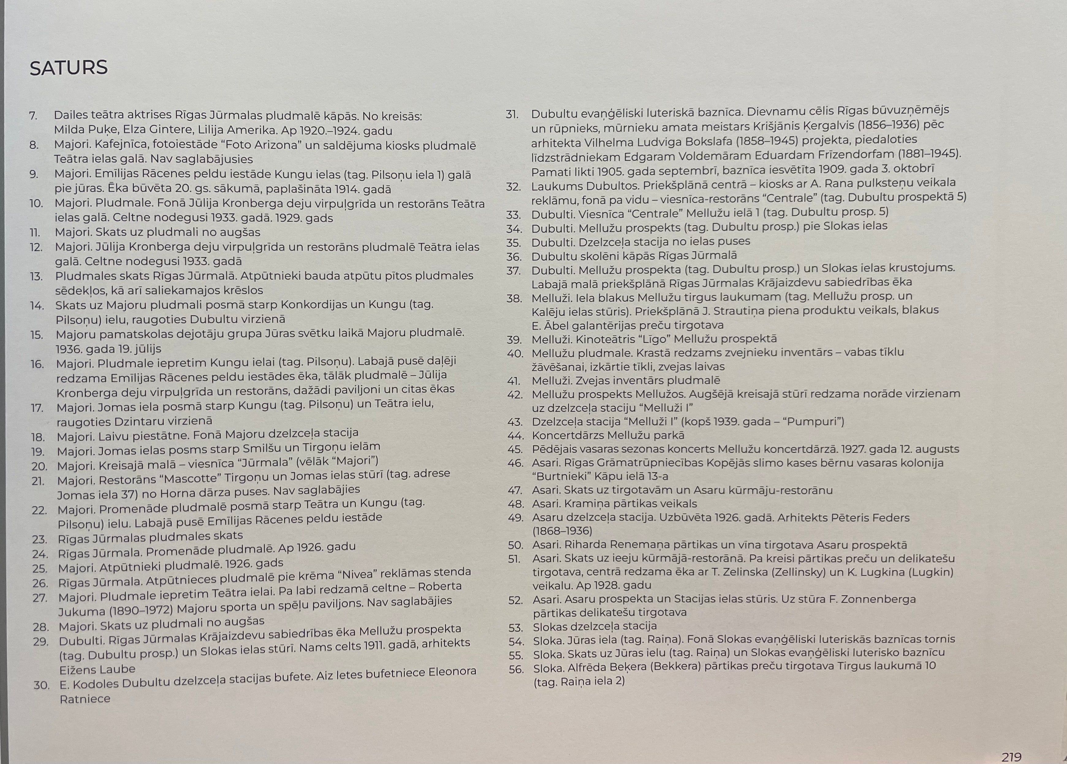 Цель книги — показать, насколько очаровательной, живой и архитектурно богатой была Юрмала уже тогда. Книга приглашает вас отправиться в визуальное путешествие, которое начинается в Майори и Дубулты, затем продолжается в Пумпури, Меллужи, Асари, Слоке и Кемери, а затем снова проходит через всю Юрмалу в сторону столицы страны, останавливаясь в Приедайне, Лиелупе, Булдури и Дзинтари, завершая путешествие в начальной точке.