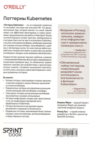 «Паттерны Kubernetes» — это не очередное справочное руководство по настройке кластеров или описанию API. Это фундаментальный труд, который отвечает на самый главный вопрос: «Как эффективно проектировать и строить приложения, предназначенные для работы в Kubernetes?». Билджин Ибрам и Роланд Хасс систематизировали лучшие практики сообщества, преобразовав их в паттерны. Книга учит не просто использовать Kubernetes, а мыслить категориями платформы, правильно комбинируя примитивы для создания отказоустойчивых, масштабируемых и удобных в эксплуатации систем. Это must-read для любого разработчика, который хочет выйти за рамки простого деплоя контейнеров и овладеть всеми возможностями Kubernetes.
