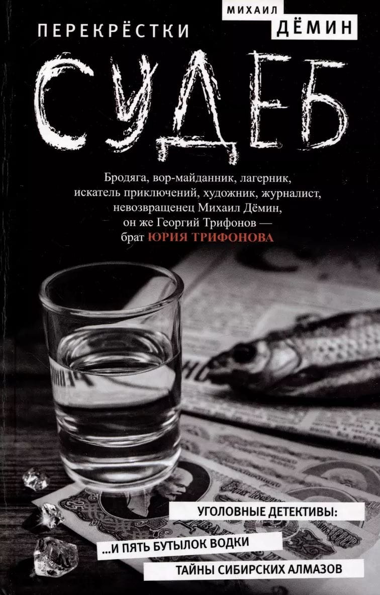 Его перу также принадлежит предлагаемая сегодня вам дилогия в уникальном жанре уголовного детектива «Перекрестки судеб». Первая часть «…И пять бутылок водки», ее герои — уголовники, действующие на юге Украины, а вторая — «Тайны сибирских алмазов», в ней мы погрузимся в жестокий мир алмазных приисков и таежных болот Якутии. Ранее эти книги были изданы в России небольшими тиражами лишь в 1990-х годах и почти не известны современному читателю. А писал Дёмин очень увлекательно, с пониманием не только уголовного мира, но и природы и этнографии народов Севера.