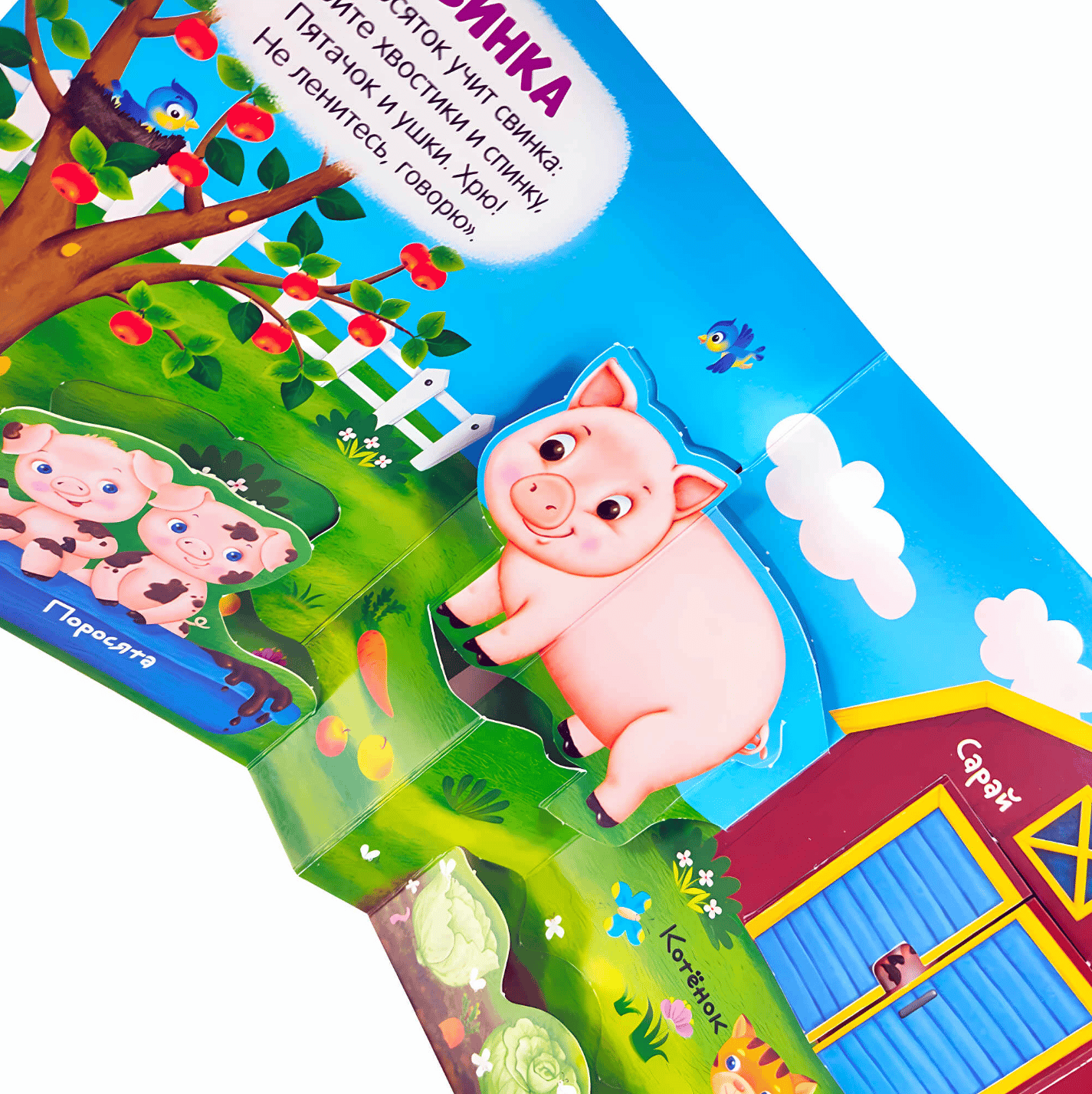 Книга «Шумная ферма» из серии «Первая книга малыша» познакомит маленького читателя с обитателями самой настоящей фермы. На страницах книги кроха увидит весёлых бурёнок и любопытных уточек, пушистых овечек и хитрых поросят. За окошками-сюрпризами прячутся весёлые стихи, а по тактильным дорожкам порхают стрекозы. Они только и ждут, когда малыш покажет им пальчиком, куда лететь! Насыщенные иллюстрации и богатый интерактивный материал надолго увлекут вашего ребенка, помогут ему развивать мелкую моторику рук и тактильное восприятие, речь и фантазию.