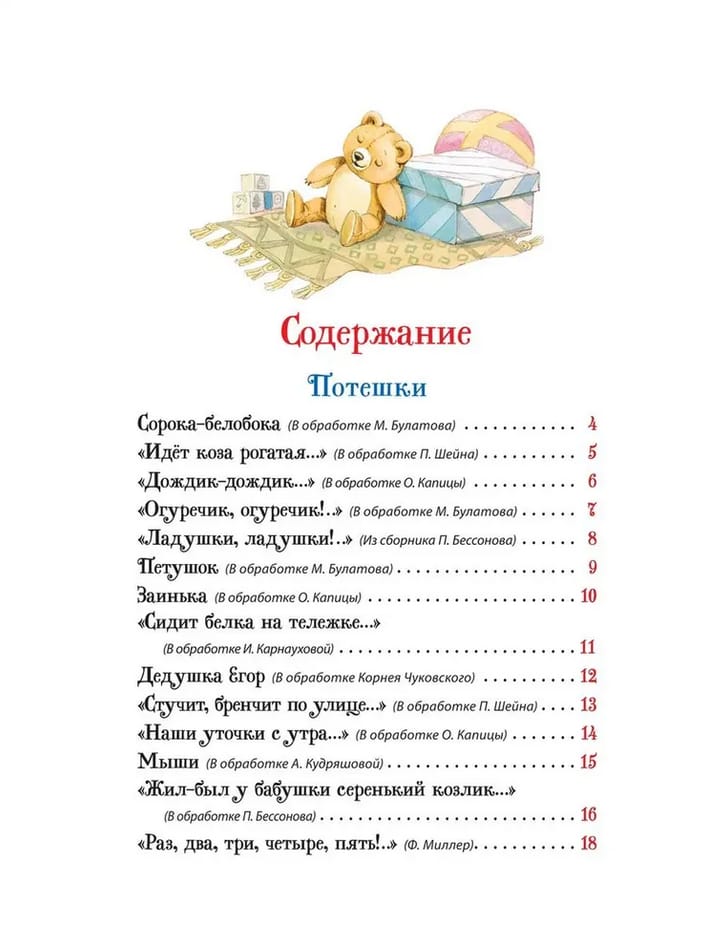 В сборник вошли русские народные сказки, веселые потешки, трогательные колыбельные-засыпайки и стихи-болтушки для самых маленьких. Яркие страницы с большими иллюстрациями, крупный шрифт для удобства чтения с ребенком, тексты в обработке профессиональных литераторов.