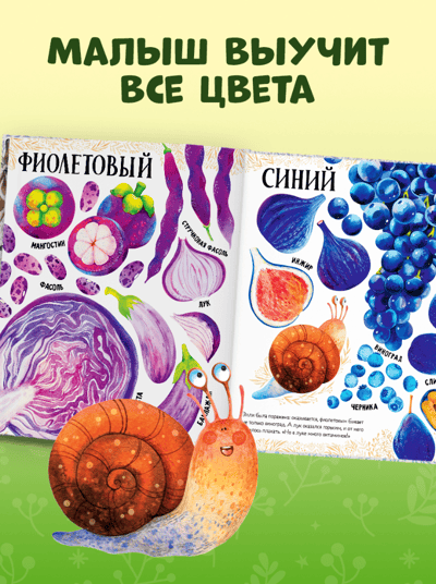 В этой яркой и красивой книге есть все для того, чтобы увлечь малыша надолго. Дети в самом раннем возрасте любят рассматривать картинки, любят крупные рисунки и яркие цвета. Благодаря приключениям улитки Элли малыш сможет познакомиться не только с основными цветами, но и с самыми разными фруктами и овощами.