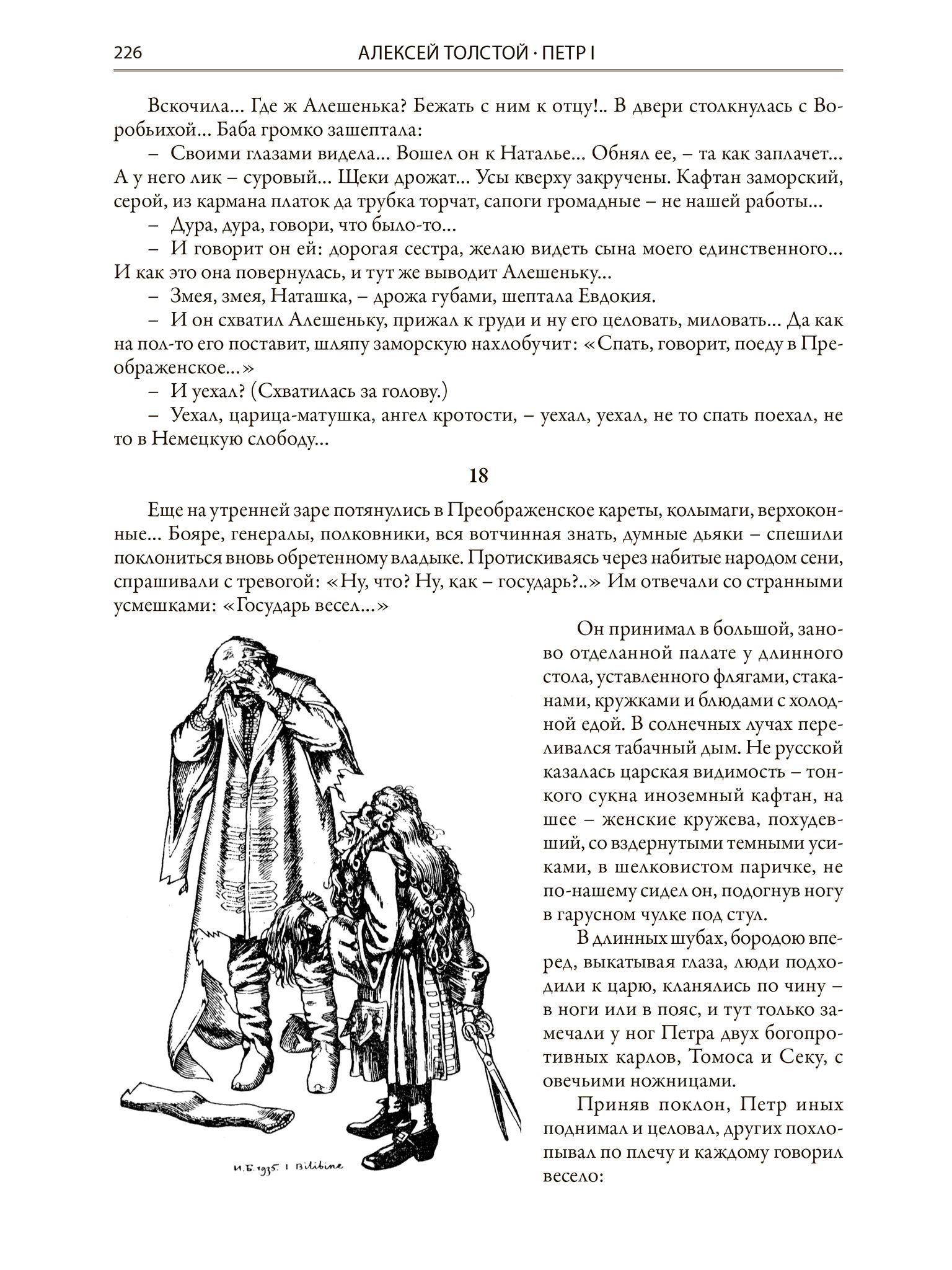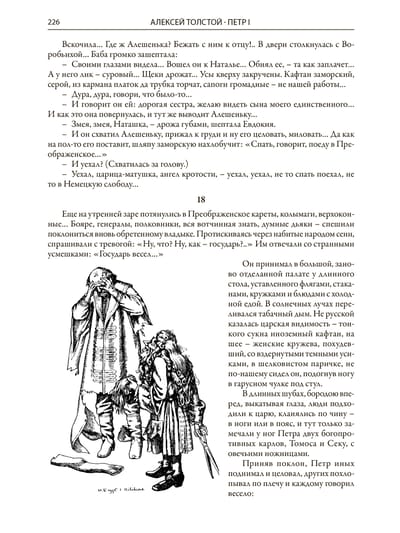 Роман «Петр I» справедливо считается классикой отечественной литературы. А.Н. Толстой работал над ним почти пятнадцать лет - с 1929г. до самой своей смерти в 1945г. В этом произведении он планомерно доказывает, что кардинальные изменения в жизни России невозможны без сильной и порой даже жестокой власти. Текст романа украшают не только великолепные рисунки классика книжной иллюстрации - И.Я. Билибина, но и любовно выполненные им буквицы.