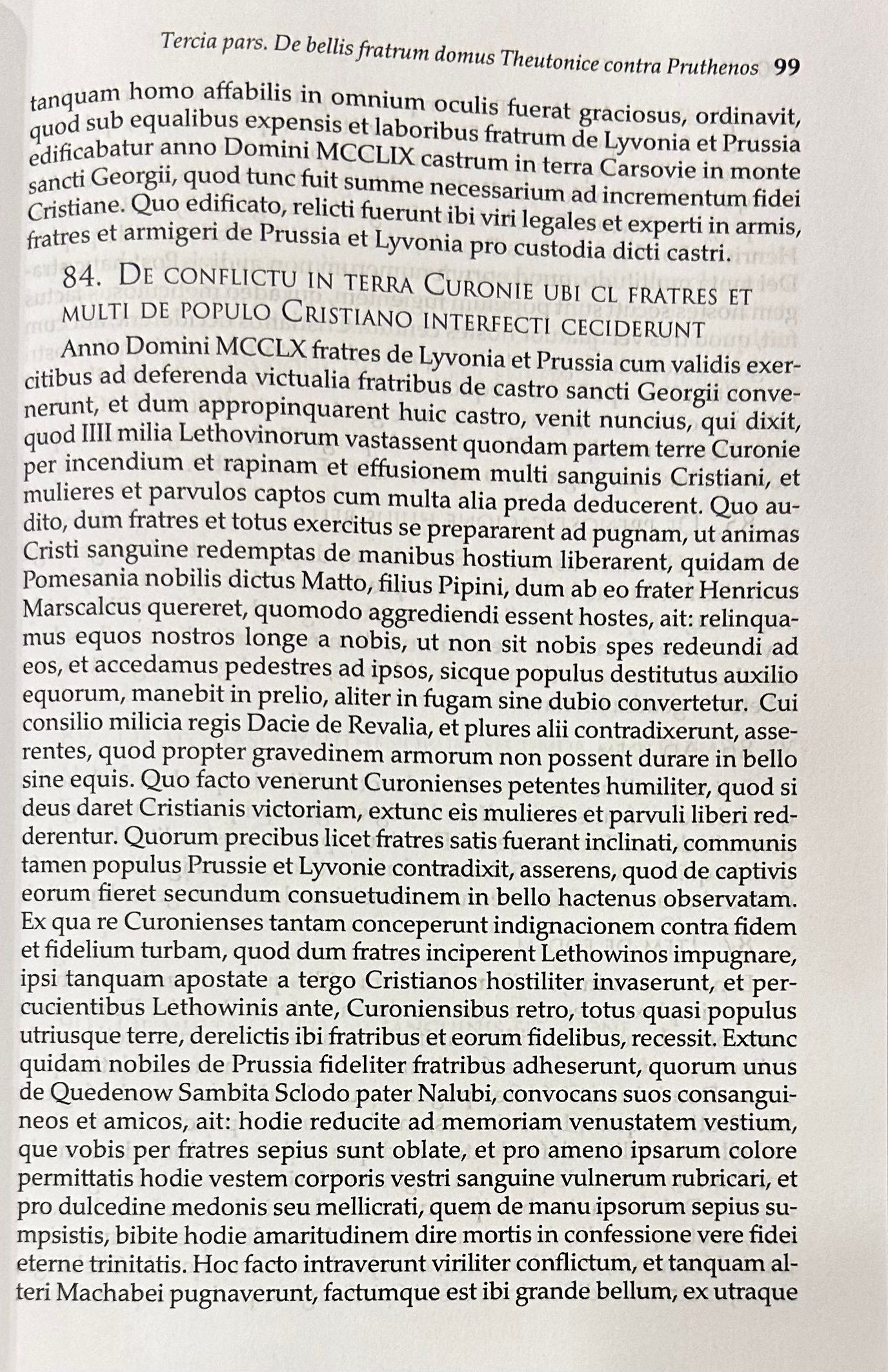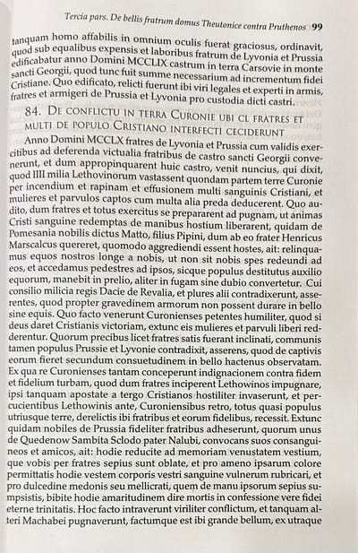 «Хроника» является не только историческим памятником, но и памятником богословской и крестоносной мысли. Вторжение Тевтонского ордена в Пруссию, по сути, было Крестовым походом, формально направленным на христианизацию прусских языческих племен, хотя на самом деле крестоносцы ставили целью создание собственного территориального государства на захваченных землях.