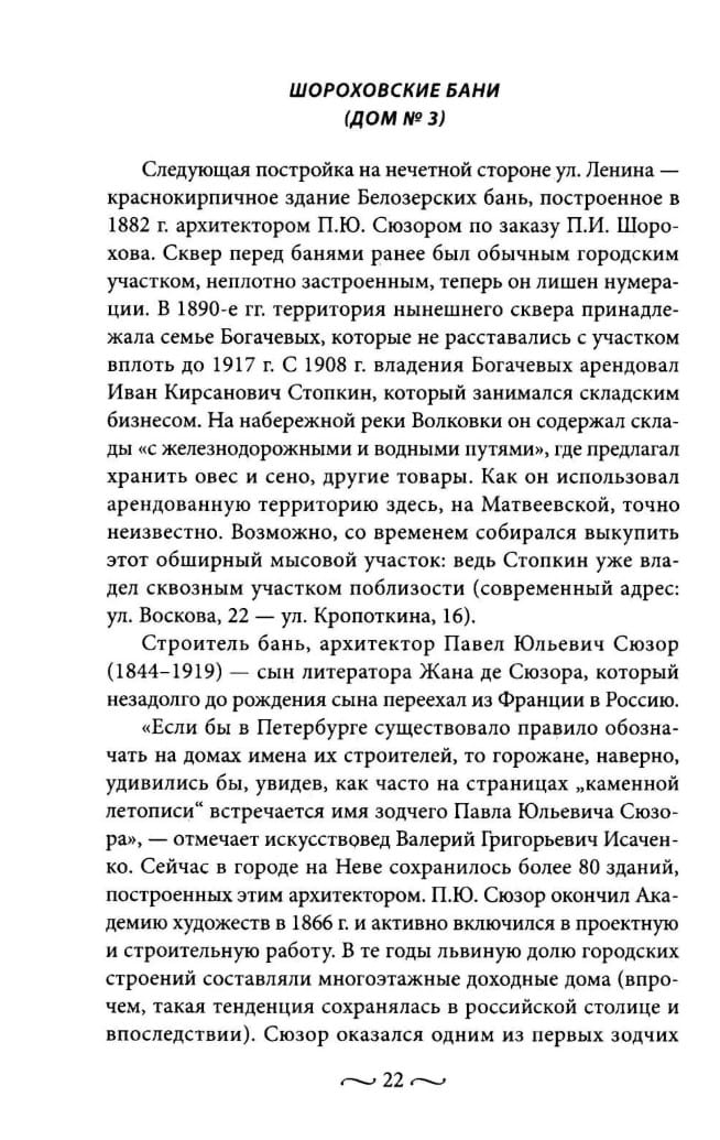 В книге пойдет речь об архитектуре и истории домов и участков, на которых эти дома построены; об архитекторах, возводивших эти здания; о домовладельцах, задумывавших строительство на своих участках и нанимавших для этих целей профессионалов; о жильцах, обитавших в существующих и канувших в Лету домах.
