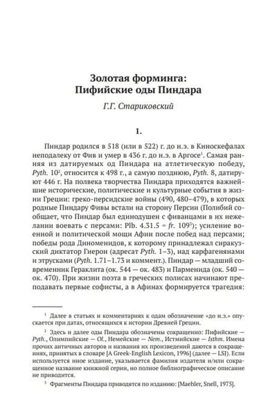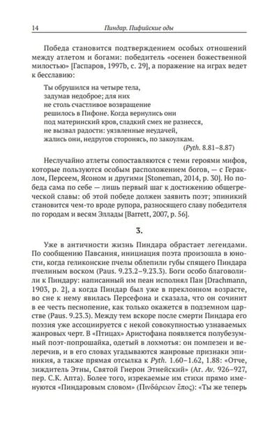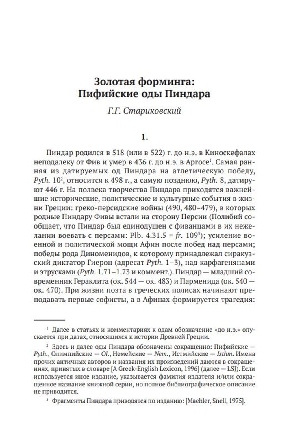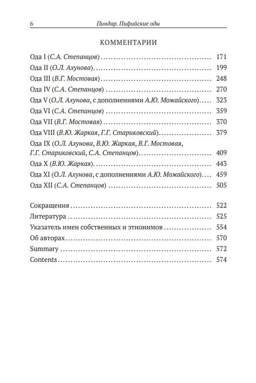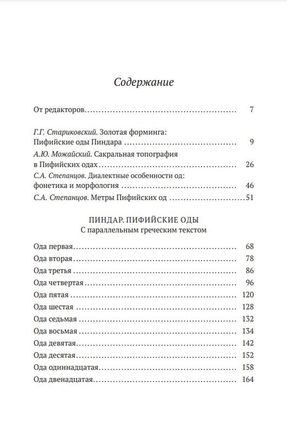 Книга включает новый перевод Пифийских од с параллельным греческим текстом, подробный комментарий, дополненный указателем собственных имен и этнонимов, а также исследования и вспомогательные материалы, помогающие сориентироваться в особенностях поэтики Пиндара, предопределивших трудности перевода его текстов, разобраться в сакральной топографии од, в их диалектной и метрической специфике.