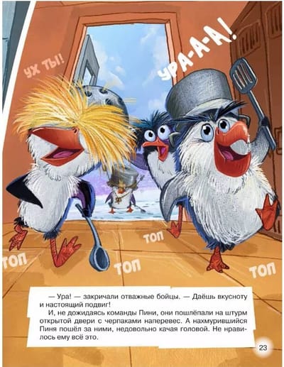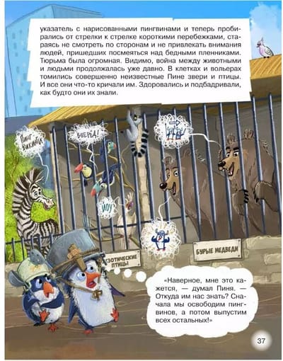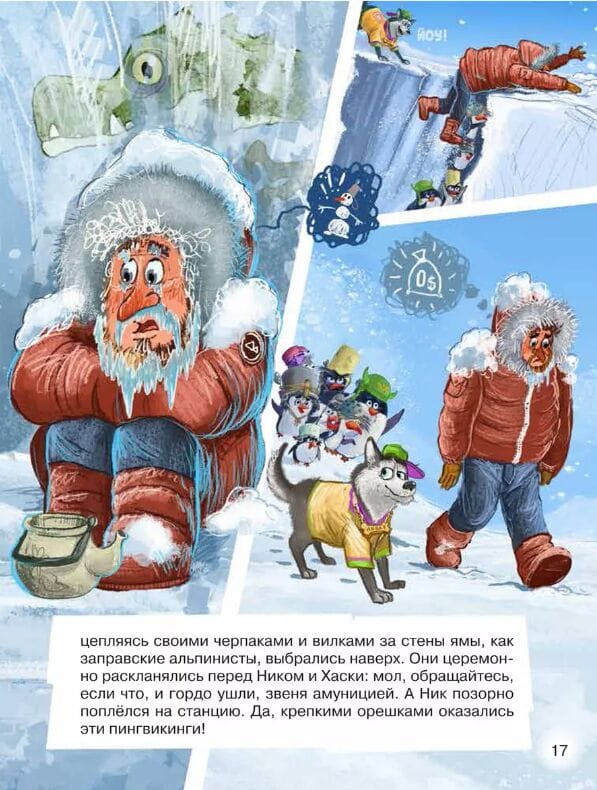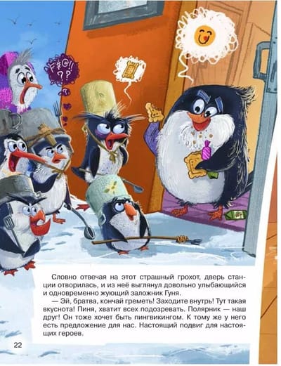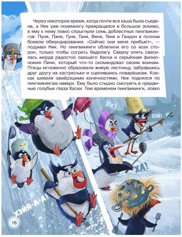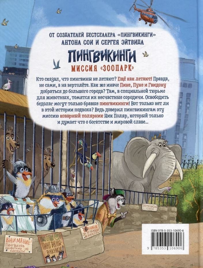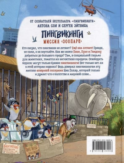 Кто сказал, что пингвины не летают? Еще как летают! Правда, не сами, а на вертолете. Как же иначе Пине, Пуне и Гвидону добраться до большого города? Там, в специальной тюрьме для животных, томятся их несчастные сородичи. Освободить бедолаг могут только бравые пингвикинги! Вот только нет ли в этой истории подвоха? Ведь доверил пингвикингам эту миссию коварный полярник Ник Поляр, который только и думает что о богатстве и мировой славе…