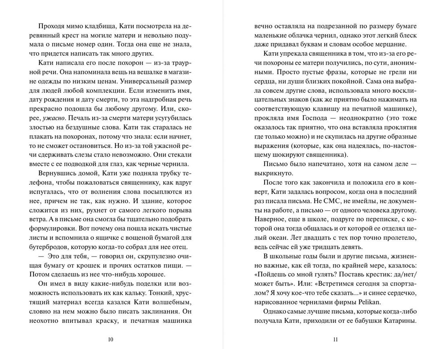 Кто сегодня пишет письма? Настоящие, на бумаге, от руки… Накануне своего сорокалетия Кати Вальдштайн решает начать новую жизнь и попрощаться со всем, что удерживает ее в родном городке. В тридцати семи письмах она обращается к людям, оставившим след в ее судьбе, — от строгой учительницы математики до бывшего мужа.