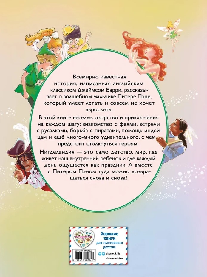 Шотландский писатель Джеймс Мэтью Барри придумал удивительного героя — мальчика, который никогда не повзрослеет. Отважный и решительный Питер Пэн собирает на волшебном острове Нигделандия компанию сверстников и придумывает для них увлекательные приключения. В динамичном сюжете сменяют друг друга знакомство с русалками, помощь индейцам, сражения с пиратами и главная битва — со злодеем капитаном Крюком. Несомненно, из этой схватки Питер Пэн выйдет победителем!