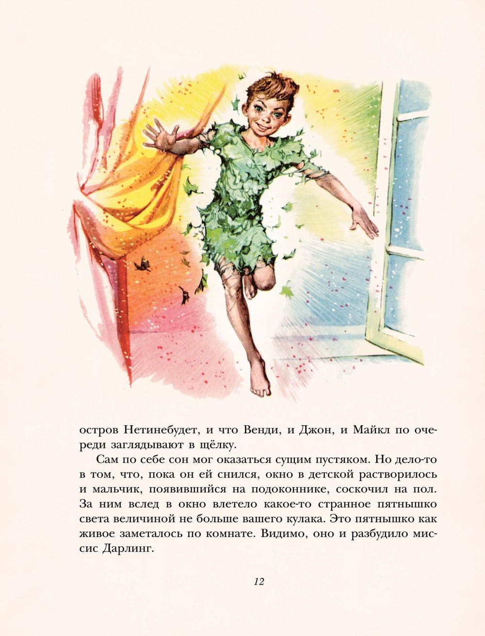 Волшебная сказка Джеймса Барри стала настоящим феноменом в детской литературе. Смелый, весёлый и жадный охотник до сказок Питер Пэн, главный герой этой повести, — мальчик, который никогда не взрослеет, живёт на острове с другими мальчишками и борется с настоящими пиратами. Однажды он прилетел к детям из семьи Дарлинг и забрал их в свою волшебную страну Нетинебудет, и их ждало множество приключений и знакомство с различными волшебными героями.