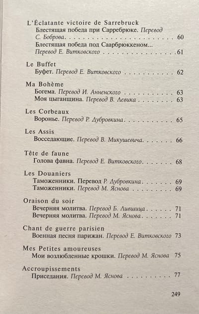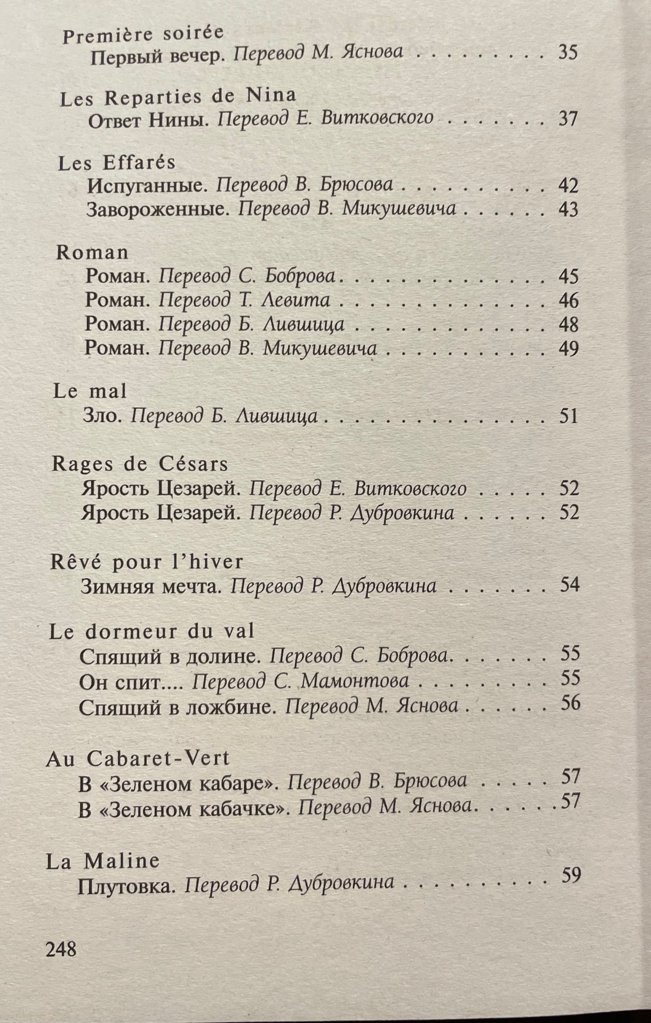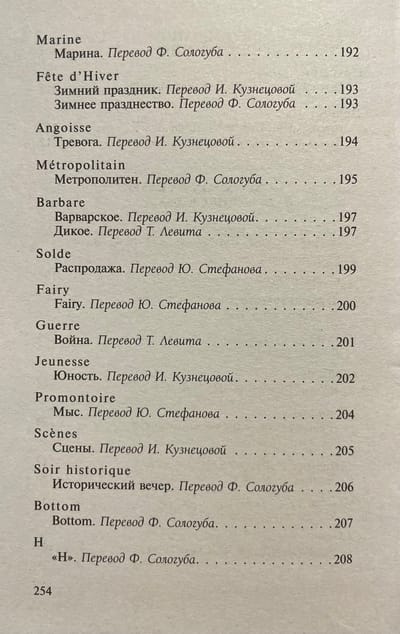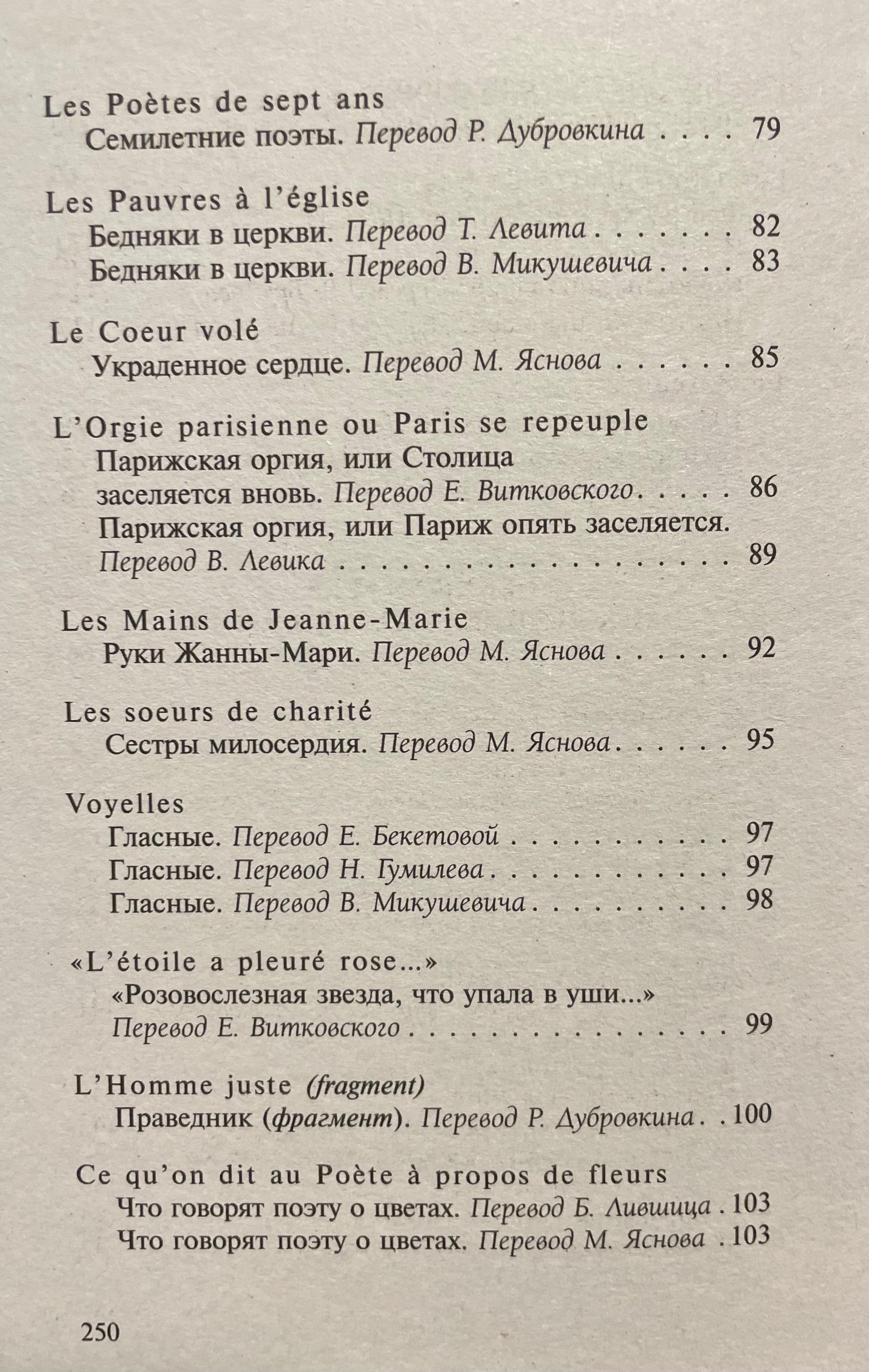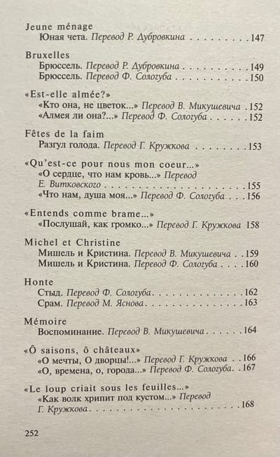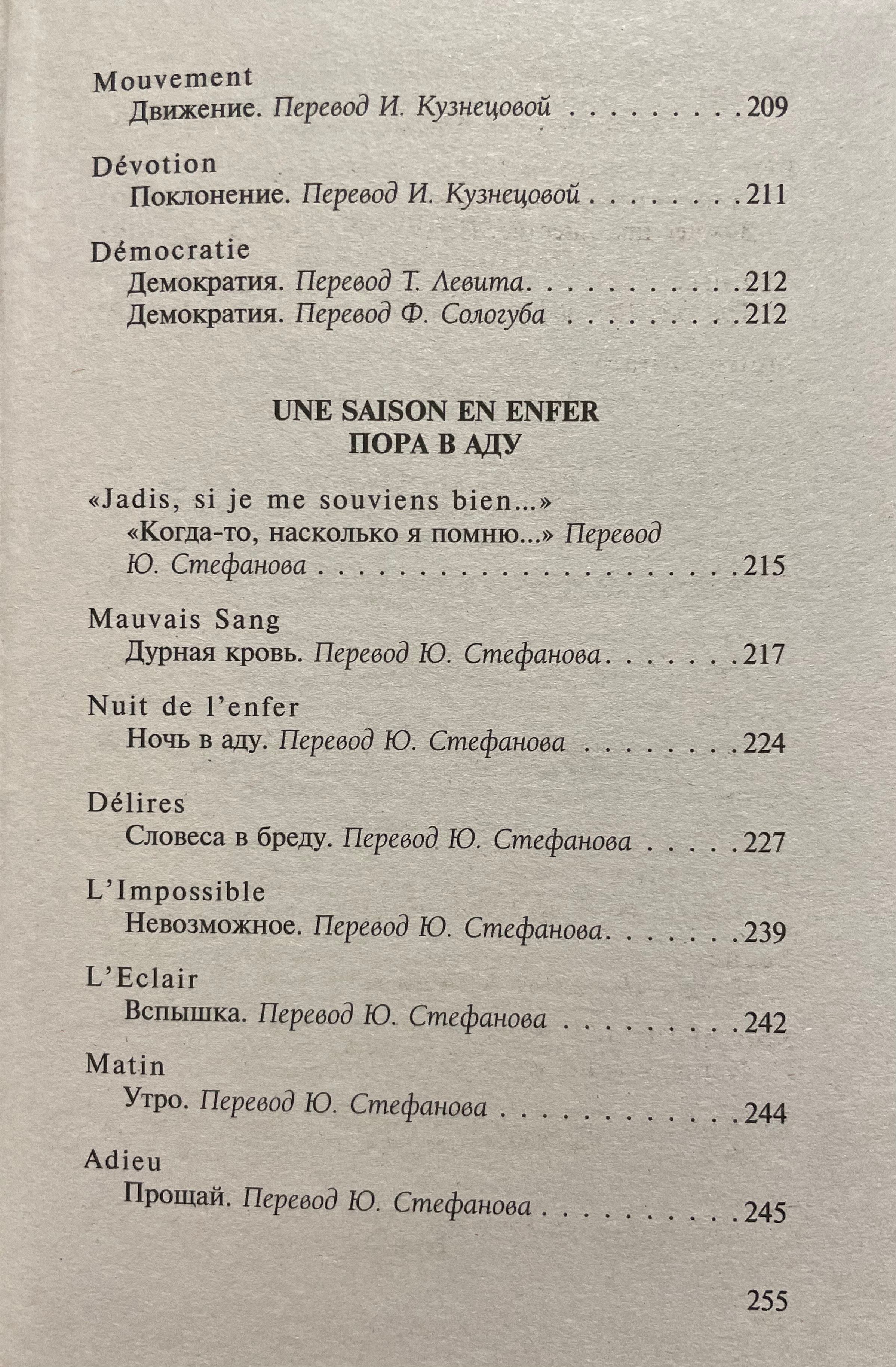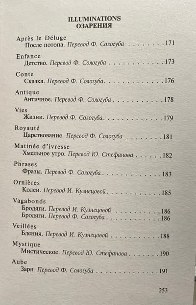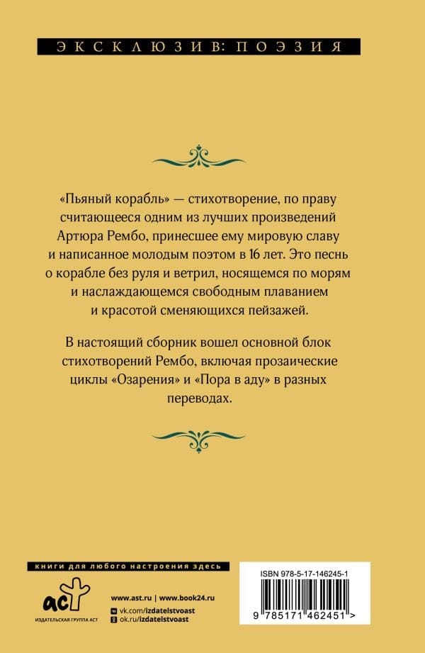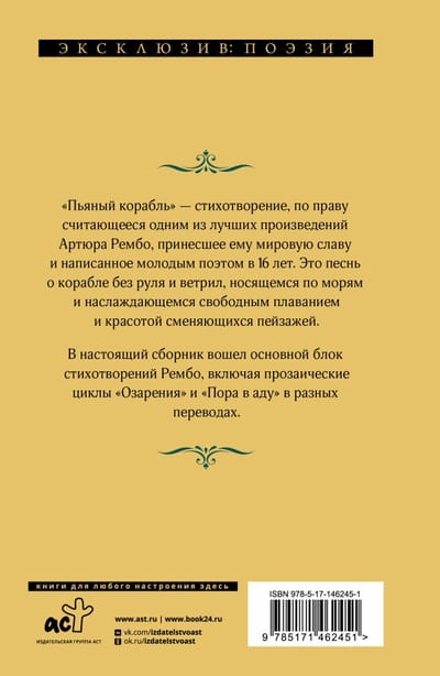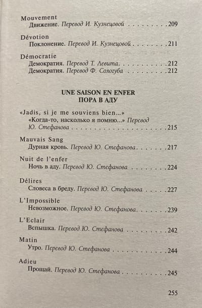 В настоящий сборник вошел основной блок стихотворений Рембо, включая прозаические циклы «Озарения» и «Пора в аду» в разных переводах.