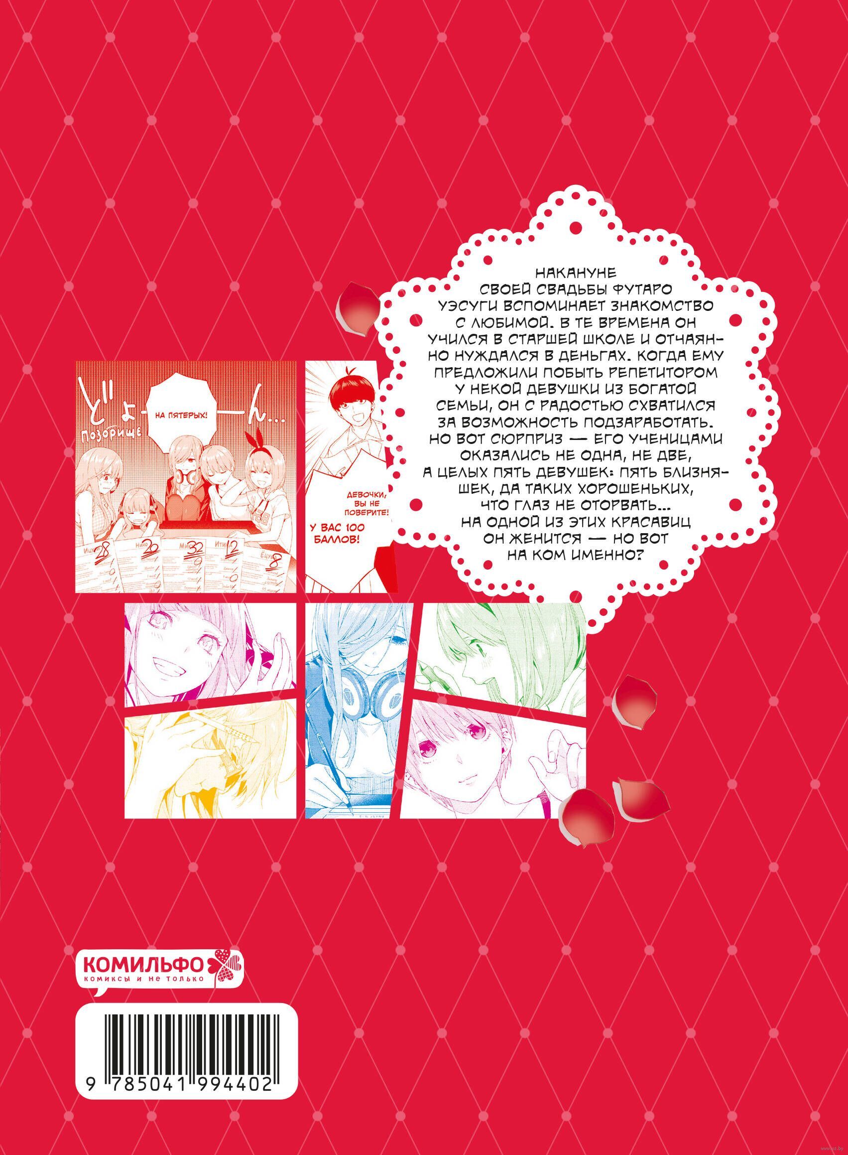 Накануне своей свадьбы Футаро Уэсуги вспоминает знакомство с любимой. В те времена он учился в старшей школе и отчаянно нуждался в деньгах. Когда ему предложили побыть репетитором у некой девушки из богатой семьи, он с радостью схватился за возможность подзаработать. Но вот сюрприз – его ученицами оказались не одна, не две, а целях пять девушек: пять близняшек, да таких хорошеньких, что глаз не оторвать...