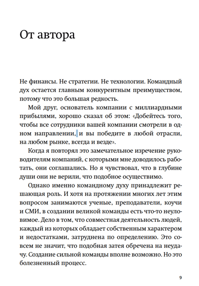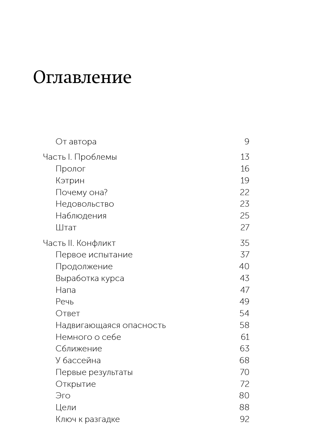 Почему возникают «пять пороков команды» — взаимное недоверие, нетребовательность, безответственность, боязнь конфликта и безразличие к результатам, как их диагностировать и что с ними делать? В первой части книги эти вопросы решает Кэтрин со своей командой, а во второй автор приводит подробное описание этих «пяти пороков команды» и методы их устранения.