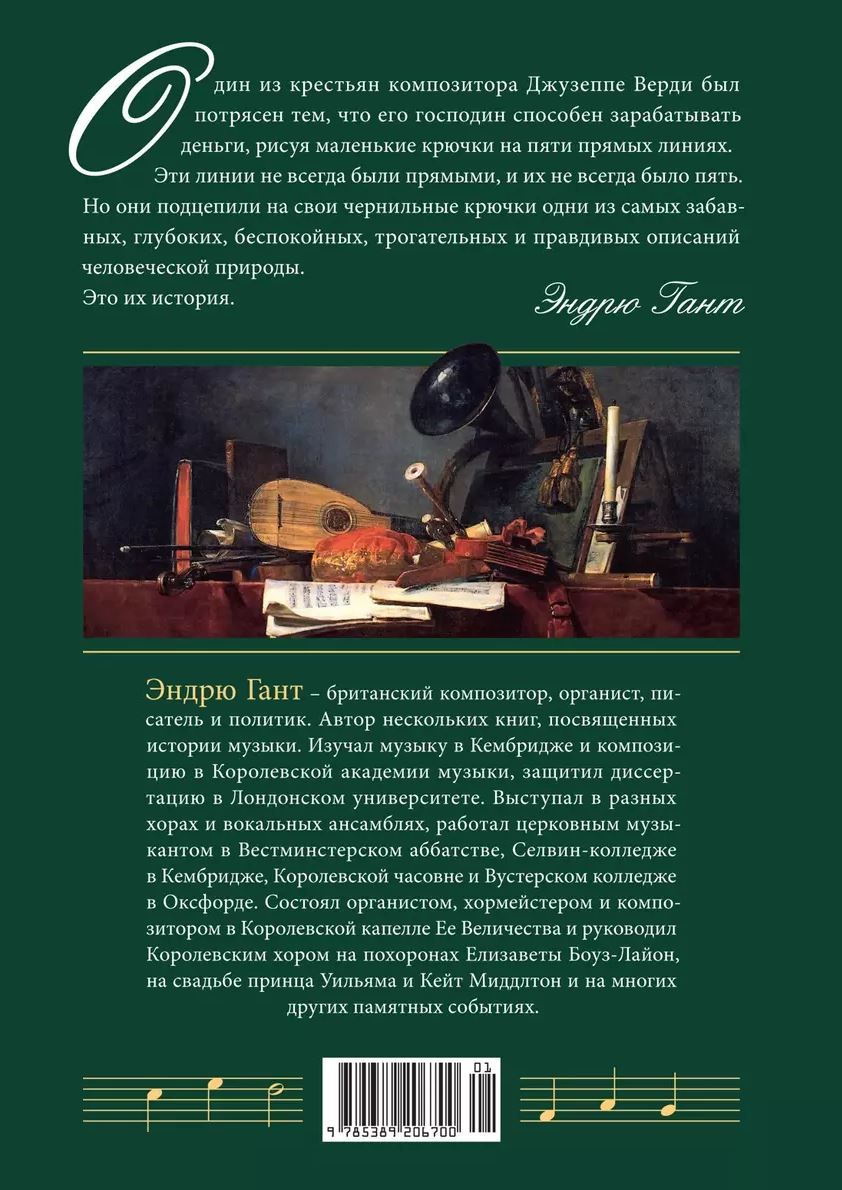 Музыка сформировала тот мир, в котором мы живем: от древних певцов, перебирающих струны кифары, до великого Людвига ван Бетховена, от гармонии и ритма до современных мюзиклов. Но что сформировало ее саму? Британский композитор и писатель Эндрю Гант рассказывает историю музыки, насчитывающую много веков: с того самого момента, как наши предки впервые научились различать высоту звука и извлекать из орудий шум, который со временем станет музыкой.