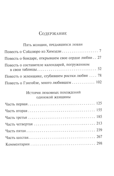 «Пять женщин, предавшихся любви» - это рассказы о судьбах пяти женщин, которые преступают законы семьи и официальной конфуцианской морали, повинуясь велению сердца. Они осознанно и добровольно идут на преступление, невзирая на то, что женщинам, уличенным в супружеской измене, грозила смертная казнь.