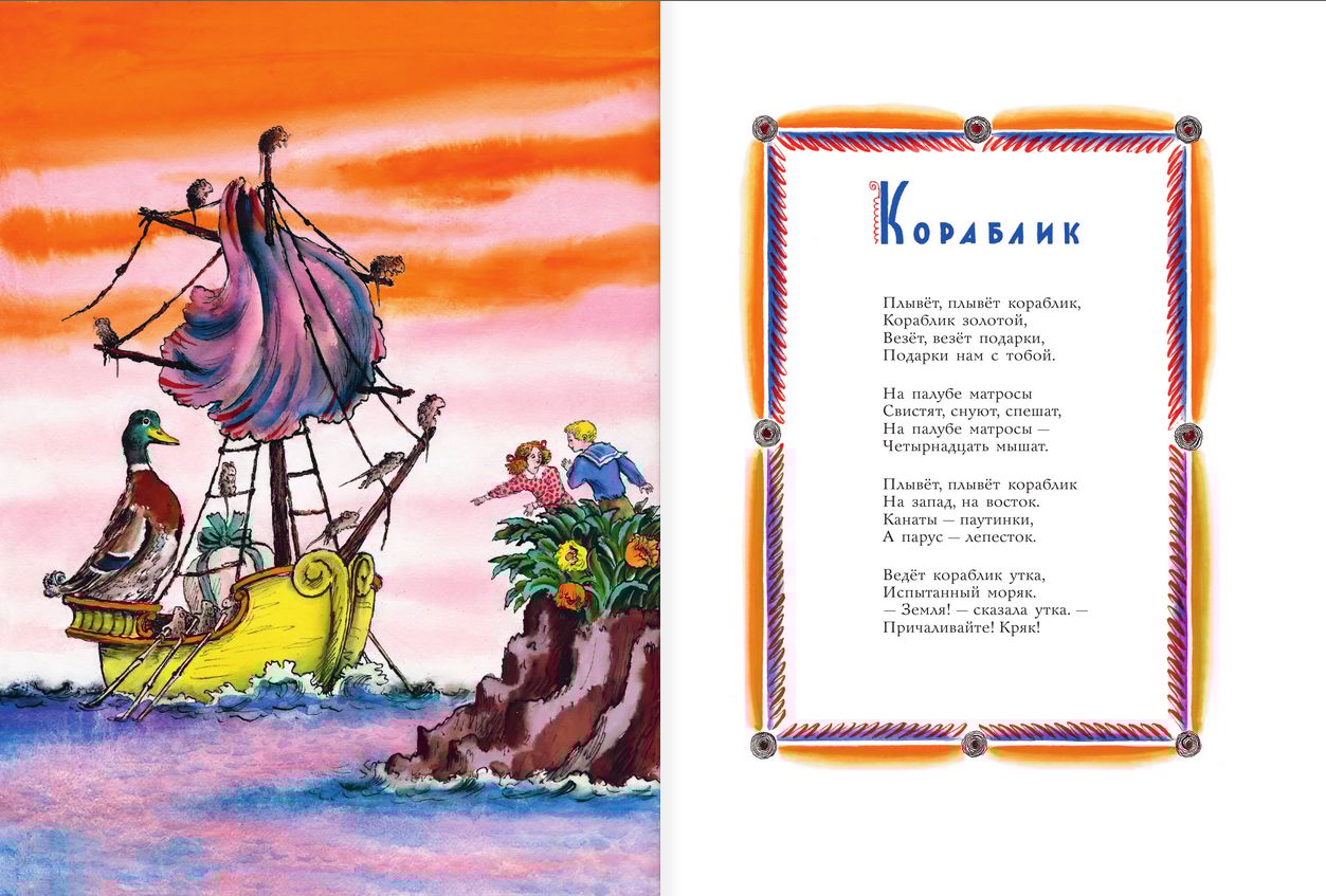 Книга «Плывёт, плывёт кораблик...»  –  маленький шедевр, плод творчества двух больших мастеров детской книги – поэта С.Я. Маршака (1887-1964) и художника-иллюстратора В.М. Конашевича (1888-1963). Поэт и художник дружили и стали соратниками и соавторами книг для детей. В 20-х годах прошлого века началось их плодотворное сотрудничество. Первое издание книги вышло ещё при жизни С. Маршака в 1963 г. в Детгизе. Наша книга - репринт этого издания. В составе книги английские народные детские песенки «Кораблик», «Маленькие феи», «Робин-Бобин», «Перчатки», «В гостях у королевы», «Дом, который построил Джек» и другие.