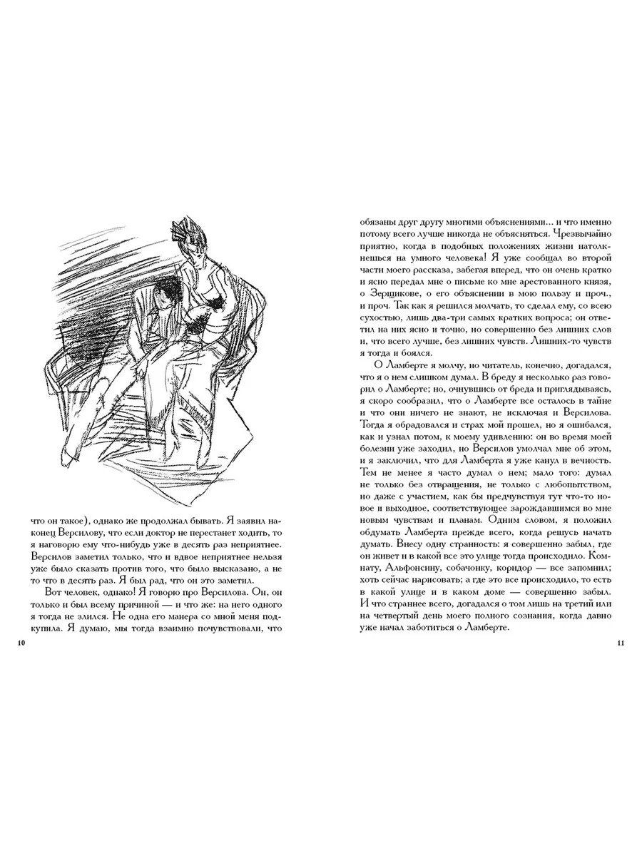 «Подросток» — один из романов «великого пятикнижия» Достоевского — написан в форме исповеди, в жанре личных записок. Одержимый собственной «идеей», раздираемый внутренними противоречиями, главный герой становится свидетелем непростых отношений взрослых людей и сам переживает не менее сложные чувства.  Роман проиллюстрировал Виталий Горяев, отразив в ломаных линиях своего рисунка слом сознания героя, жизненный перелом, непростое взросление гордого и уязвимого юного человека.