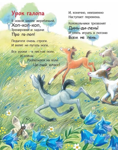 На страницах этой книги поселились грациозные, умные и добрые животные – лошади. Тут им живётся очень радостно: они бегают по полям, лакомятся сладкой травкой, выступают на арене, а жеребята даже ходят в детский сад и берут уроки галопа. Веселые и добрые стихи Юлии Симбирской и яркие иллюстрации Любови Ерёминой-Ношин не оставят равнодушными малышей и их родителей.