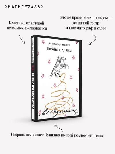 Кроме пьес в книге также собраны самые известные поэмы Пушкина, которые перенесут вас на живописные склоны Кавказских гор, под своды бахчисарайского дворца и на берега бушующей Невы...
