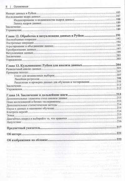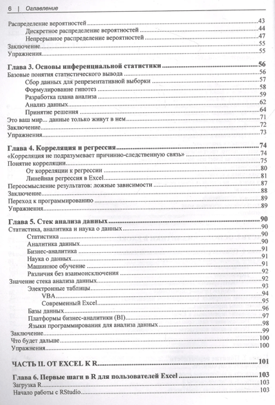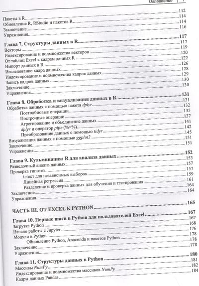 В книге приводятся практические приемы анализа данных. Рассказано, как исследовать и тестировать взаимосвязи между переменными в Excel и использовать его для статистики и анализа. Описан перенос данных из Excel в R, язык программирования с открытым исходным кодом, специально разработанный для выполнения статистического анализа. Отдельный раздел посвящен переносу данных из Excel в Python и выполнению полного анализа данных средствами этого языка. В результате читатель научится выполнять разведочный анализ данных (Exploratory Data Analysis, EDA) и проверку гипотез с использованием языков программирования Python и R.