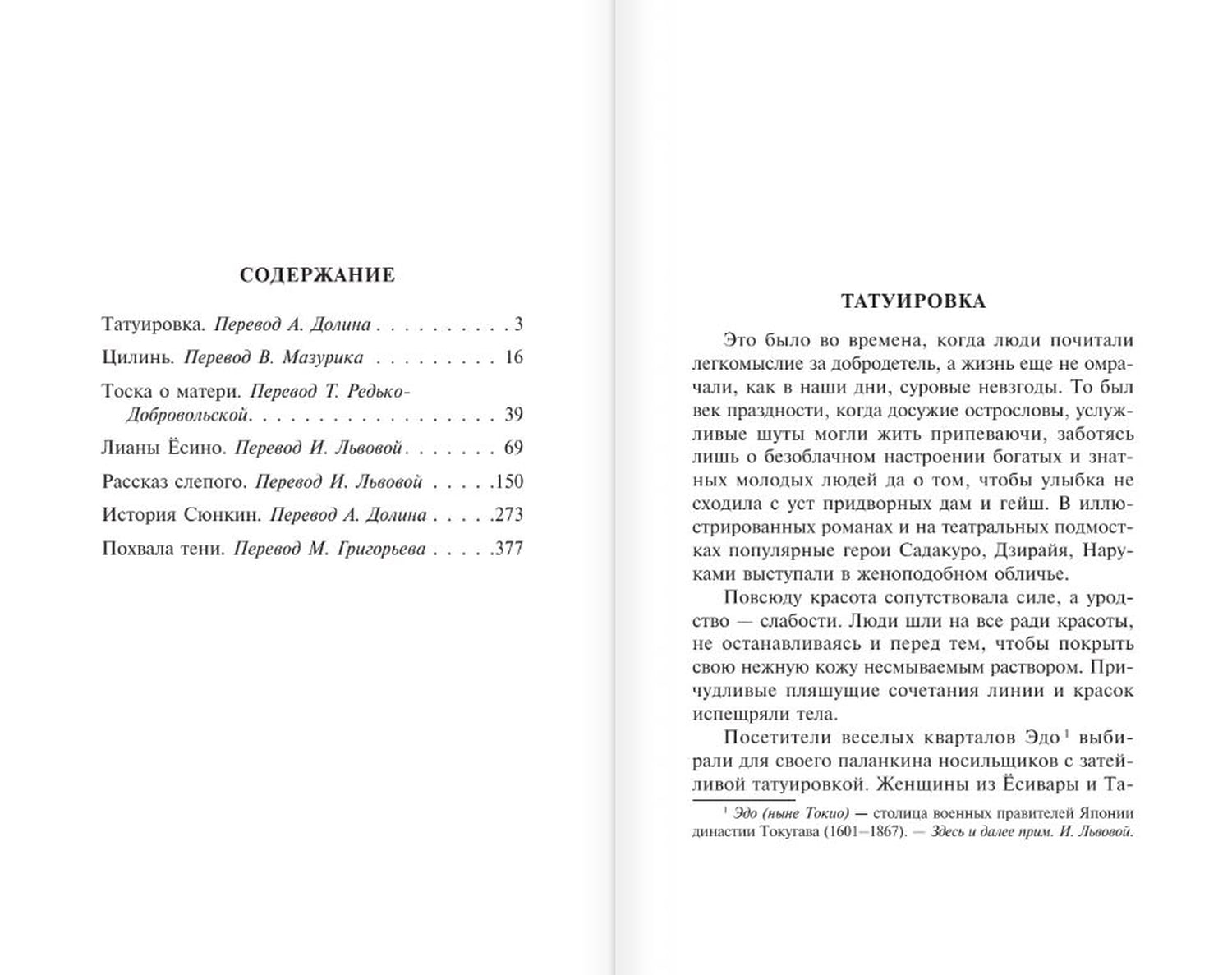 Также в этот сборник вошли избранные повести и рассказы автора, в которых Танидзаки в полной мере демонстрирует свой блестящий стиль, ясный ритм повествования, непревзойденное владение словом и глубокое понимание истории и традиций родной страны.