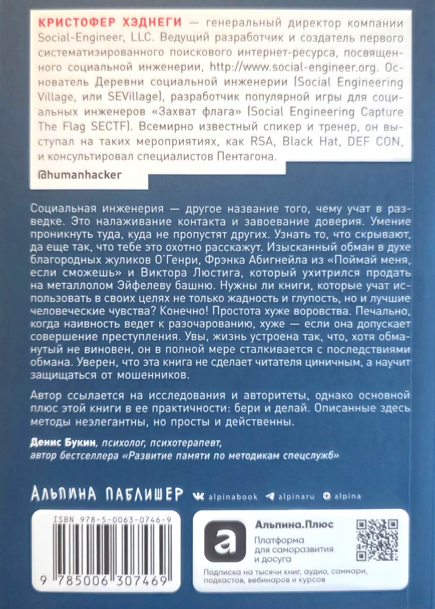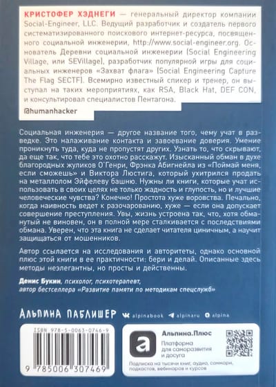 Кристофер Хэднеги, всемирно известный специалист по социальной инженерии, научит вас распознавать манипуляции всех типов и противодействовать мошенникам всех мастей. Больше никто не сможет заставить вас сделать то, что вы делать не планировали, — расстаться с деньгами, выдать важную информацию, совершить опасные действия. Все примеры, которые приводит Хэднеги, взяты из его личной и профессиональной практики.