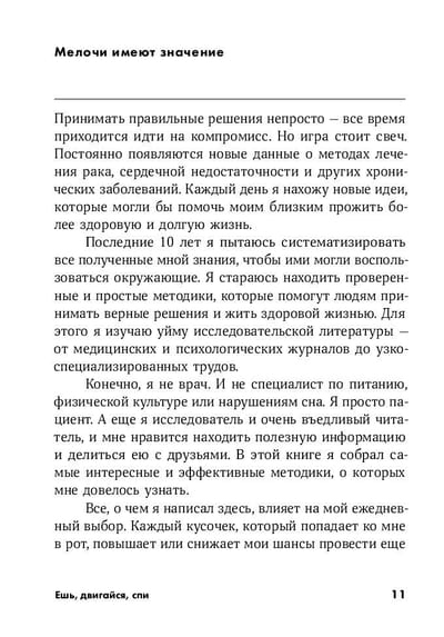 А ведь именно эти «мелочи», как утверждает Том Рат, оказывают существенное влияние на продолжительность и качество нашей жизни. Не важно, какой образ жизни вы ведете сегодня, всегда можно измениться, чтобы прожить долгую и полноценную жизнь.