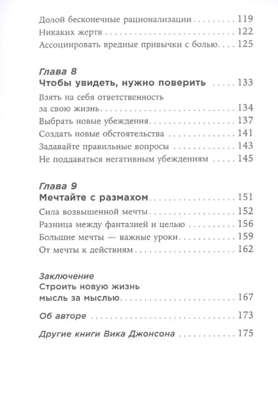 Известный специалист по саморазвитию, автор бестселлера «52 понедельника» Вик Джонсон утверждает: «Ты то, что ты думаешь», а значит, изменив образ мышления, можно поменять многие аспекты своей жизни. Например, наконец заняться спортом в удовольствие, а не принуждая себя, или решиться на глобальные перемены — переезд или смену работы. На страницах этой книги вы найдете не только тонкие наблюдения о связи мышления с нашими мечтами, успехами и неудачами, но и практические советы и упражнения, которые помогут настроить подсознание на новую, счастливую жизнь.
