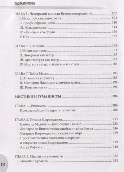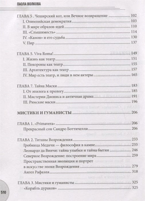 Это издание объединяет три книги, основанные на уникальном цикле лекций искусствоведа Паолы Волковой. Первая — «Комментарий к Античности», где прослеживаются новые связи между формами — от Стоунхенджа до театра «Глобус», от Крита до испанской корриды, от европейского средиземноморья до концептуализма XX века, — все это связано и не может существовать друг без друга. Вторая книга «Мистики и гуманисты» посвящена Ренессансу. Художники этого периода Сандро Боттичелли и Леонардо да Винчи, Рафаэль и Тициан, Иероним Босх и Питер Брейгель Старший не были просто художниками. Они были философами, заряженными главными проблемами времени. Вернувшись к идеалам Античности, они создали цельную, обладающую внутренним единством концепцию мира, наполнили традиционные религиозные сюжеты земным содержанием. Последняя книга рассказывает о феномене импрессионизма. Эдуард Мане и Клод Моне, Эдгар Дега и Огюст Ренуар, Анри де Тулуз-Лотрек и Поль Гоген пытались донести до зрителя impression, красоту повседневной действительности, и передать то, что глаз видит в конкретный момент, а получилось так, что их творчество раз и навсегда повлияло на все последующее искусство. Книга приглашает читателя в увлекательное путешествие сквозь века, где он, следуя за рассказом искусствоведа, сможет по-новому осмыслить образы мировой художественной культуры.