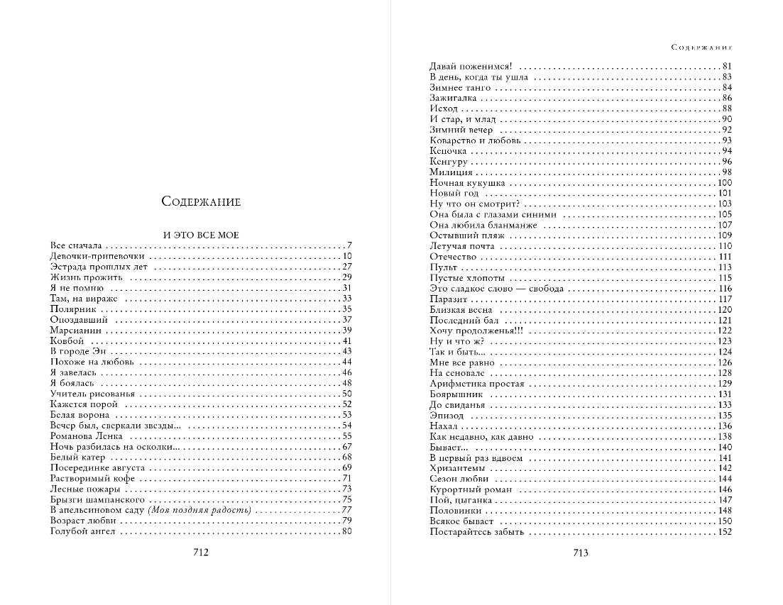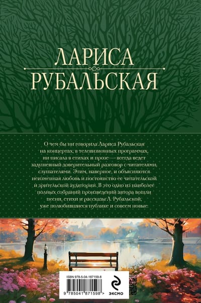 Лариса Рубальская, о чем бы ни говорила на концертах, в телевизионных программах, ни писала в стихах и прозе, — всегда ведет задушевный доверительный разговор с читателями, слушателями. Этим, наверное, и объясняются неизменная любовь и постоянство ее читательской и зрительской аудитории. В это одно из наиболее полных собраний произведений автора вошли песни, стихи и рассказы Л. Рубальской, уже полюбившиеся публике и совсем новые.