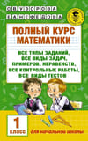 Полный курс математики: все типы заданий, все виды задач, примеров, неравенств, все контрольные работы, все виды тестов. 1 класс