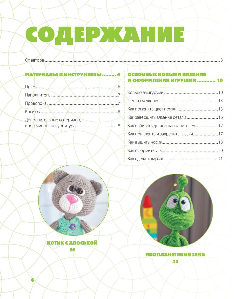 Очаровательный зеленый инопланетянин, который приветливо машет лапкой с обложки — это не просто вязаная игрушка! С ним и с его «товарищами», которым посвящена эта книга, можно придумать сотни веселых игр, поставить спектакль или даже снять мультик. Ведь эти игрушки умеют двигаться, принимать любые позы, держать в лапах предметы, сидеть или стоять и даже бегать. Секрет в каркасе, спрятанном внутри каждой игрушки.