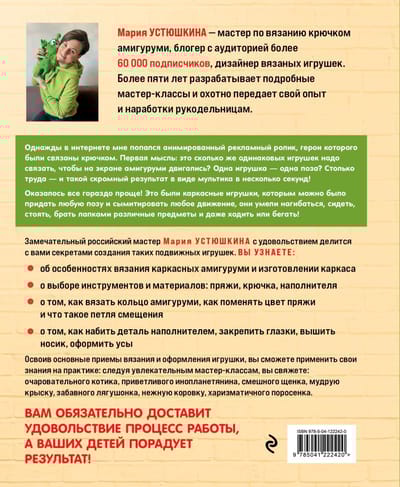 Уникальное пособие популярного блогера с огромной аудиторией и замечательного мастера Марии Устюшкиной посвятит вас во все тонкости вязания каркасных игрушек-амигуруми. От выбора пряжи и крючка до создания каркаса, от крепления глазок до оформления усов. А какие чудесные игрушки вы свяжете по подробным авторским мастер-классам!
