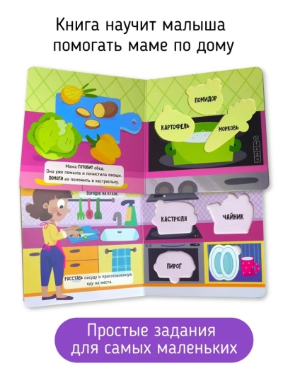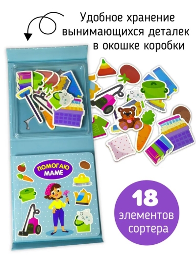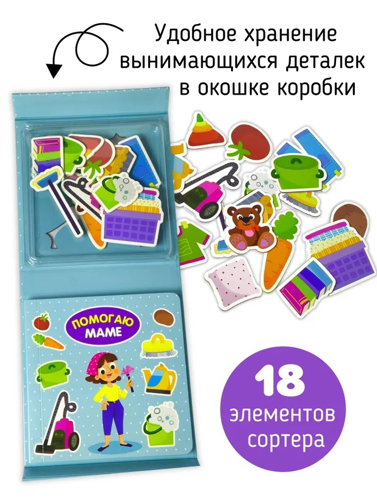 Погрузите вашего малыша в волшебный мир домашних дел с нашей развивающей книгой-сортер "Помогаю маме"! Это не просто книга, а интерактивное приключение, которое делает обучение веселым и увлекательным. Данная развивашка помогает маленьким исследователям осваивать навыки порядка и ответственности с удовольствием.